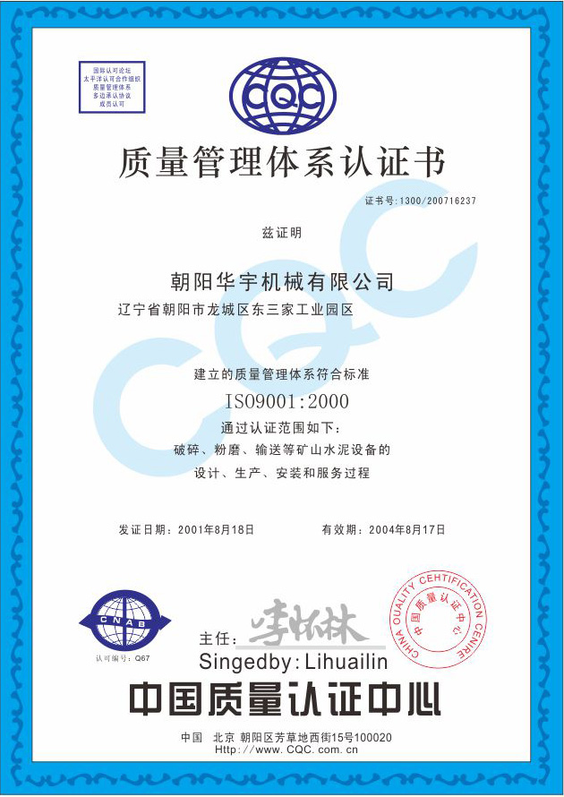 質(zhì)量管理體系認(rèn)證書